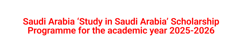 The Kingdom of Saudi Arabia offers fully funded, long-term scholarships for Master’s and Doctoral studies through its “Study in Saudi Arabia” initiative. These awards cover the entire duration of the chosen degree cycle and are open to international applicants for the 2025–2026 academic year.
